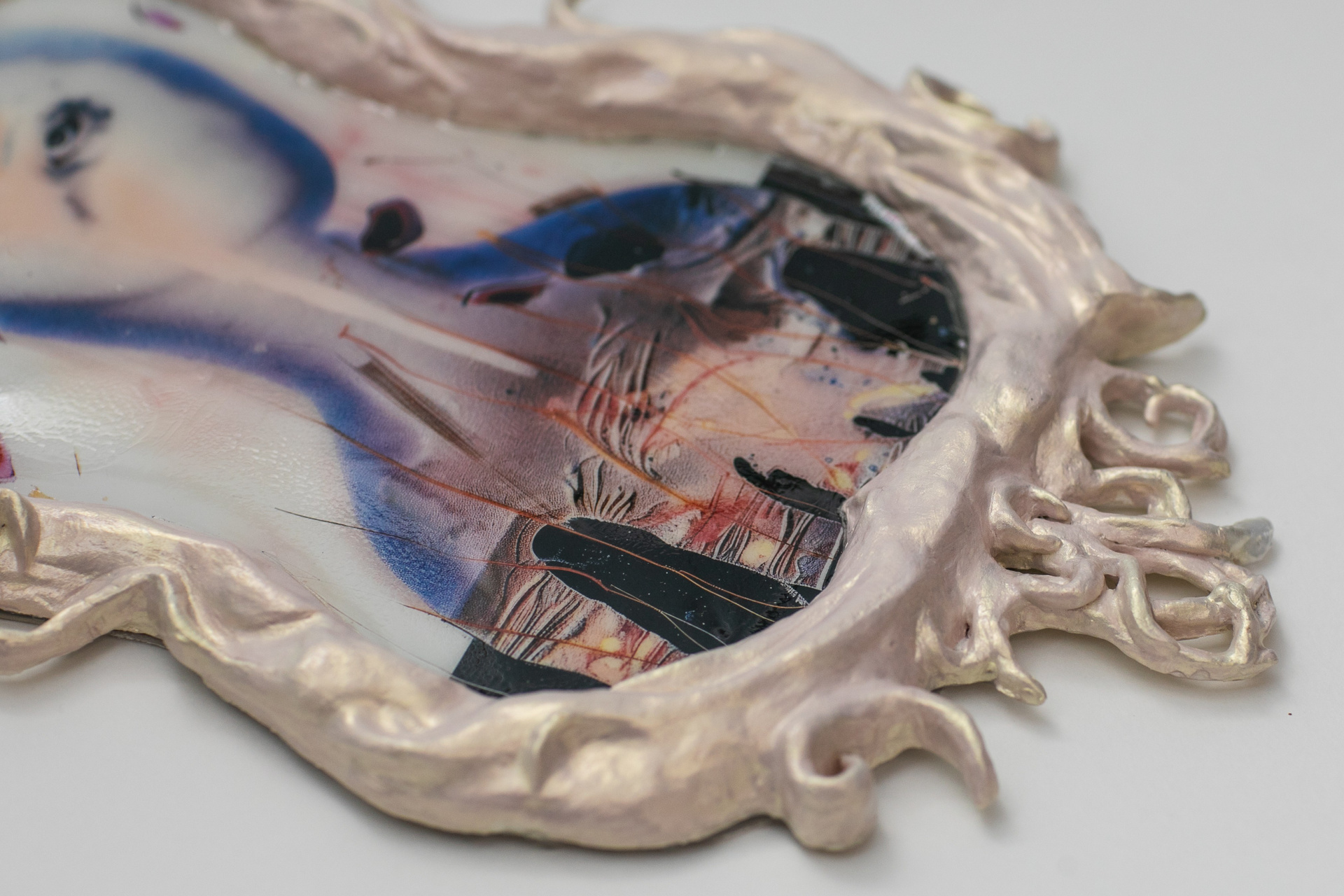глина, коллажный отпечаток под эпоксидной смолой, 38×22 см