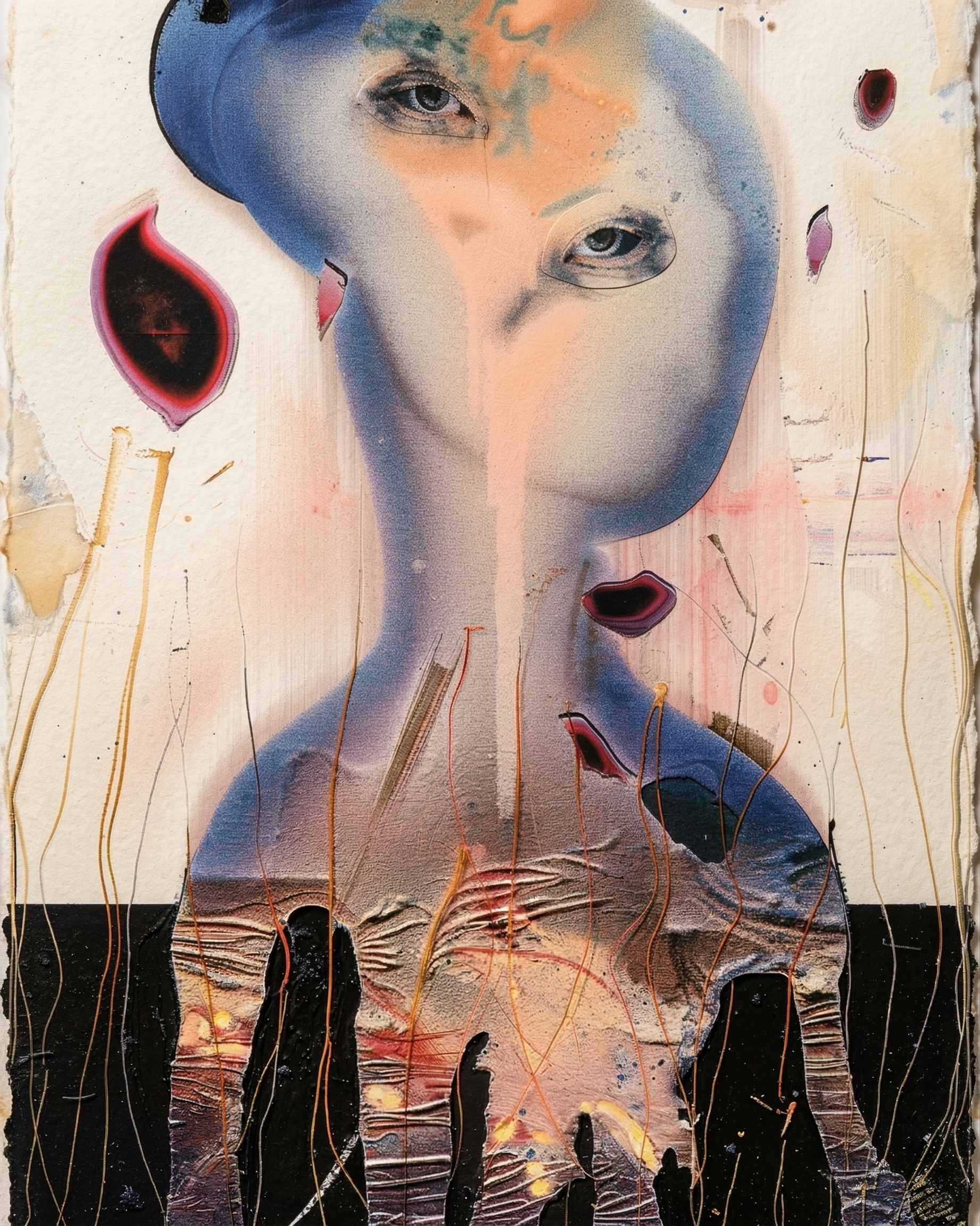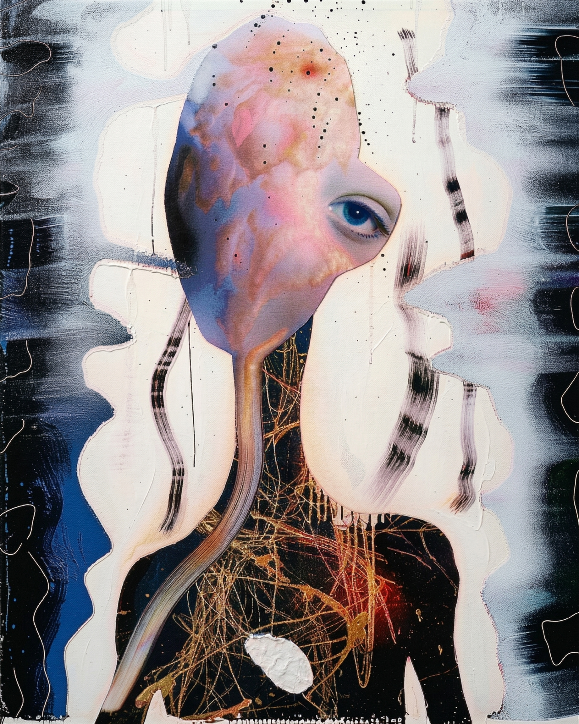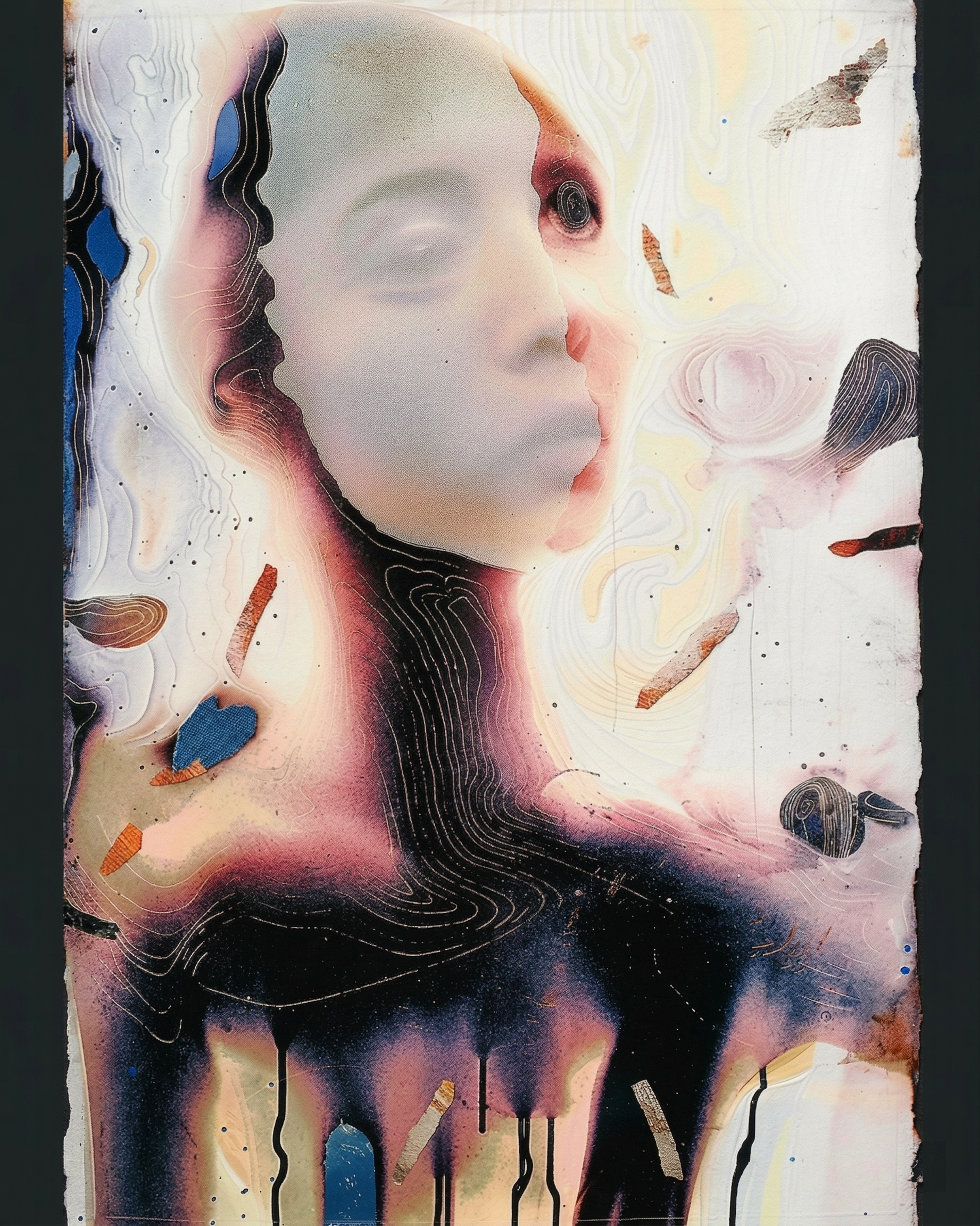 I express my quest through multilayered textures and refracted images—for me, they become a language capable of conveying the complex dynamics of internal metamorphoses. Every layer of paint, every deformation of form is a trace of experience, a visual chronicle of how experience imprints itself on us, shaping the intricate relief of our personality.